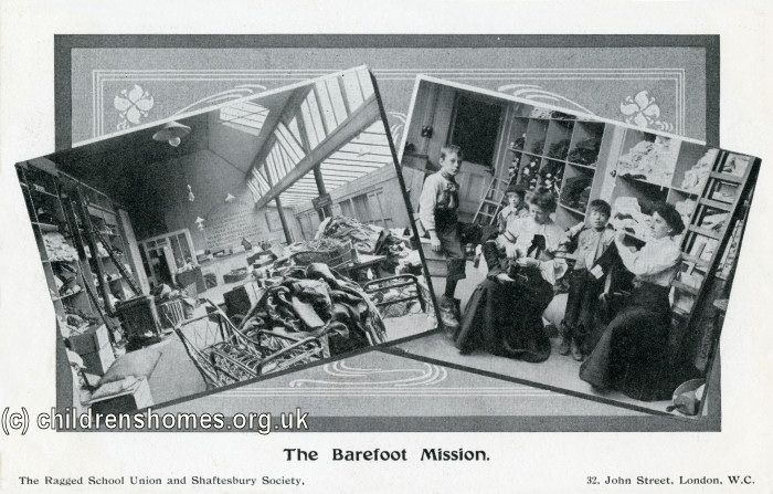 The Barefeoot Mission, originally known as the Bible Band Barefoot Mission, was founded in 1895 by Mr Hartley Aspden, the editor of the Sunday Companion Newspaper. Its purpose to was supply London's poor ragged and barefoot children with shoes, stockings, and warm clothing for the winter. It initially occupied premises at 41 Clapham Road, Stockwell.