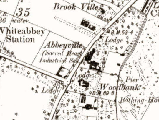 On 6 June 1896, the Sacred Heart Industrial School for Roman Catholic Girls was certified to operate in premises in a property known as Abbeyville, on Shore Road, Whiteabbey (or White Abbey), near Belfast. The school, which was established as the junior branch of the St Patrick's Industrial School for Girls on Crumlin Road, initially accommodated up to 50 girls. Its capacity was increased to 100 on 18 September 1897, and to 120 on 2 September 1898.
